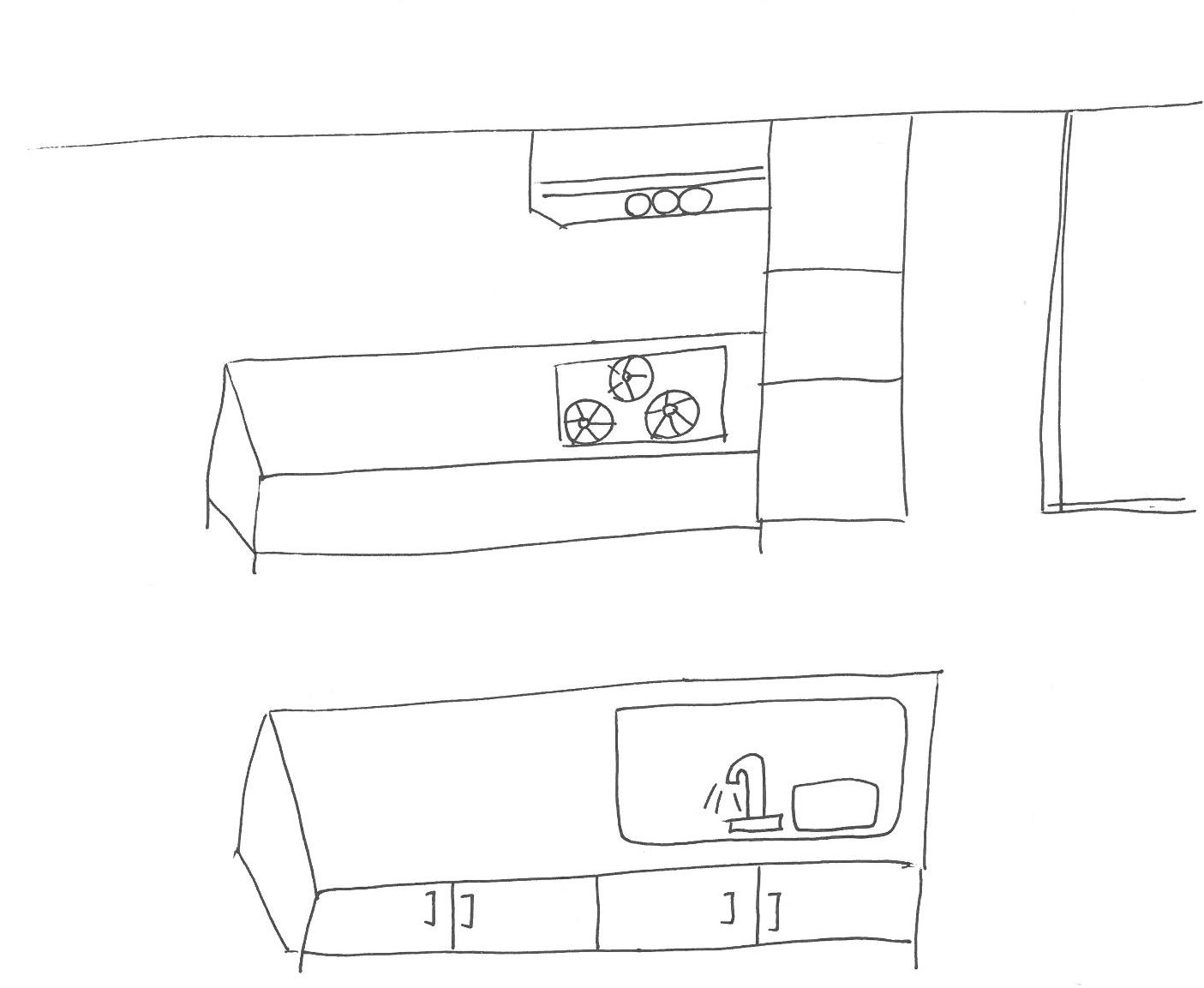 キッチン右側か左側が壁に面しているキッチンで、対面キッチンともいう。